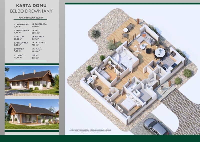 1. Elewacja: drewniana lub tynk na ociepleniu (do wyboru).